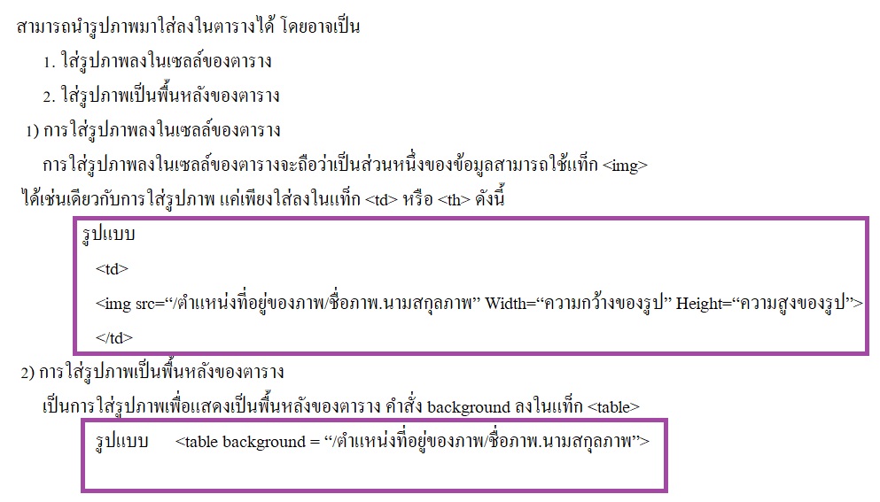 การใส่รูปภาพลงในตาราง