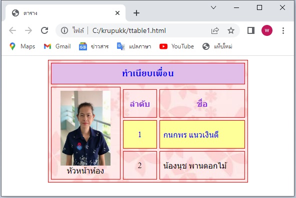 ตัวอย่างการใส่ภาพพื้นหลังและภาพในตาราง